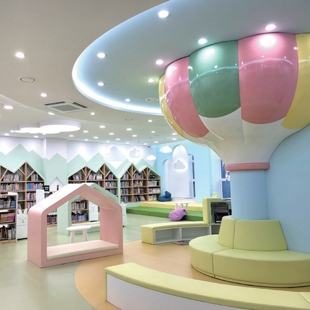 구름 모양을 형상화한 책상, 연령에 맞는 의자,편하게 읽을 수 있는 빈백 소파 등 아늑한 분위기