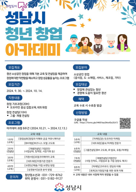 성남시(시장 신상진)는 오는 10월 14일까지 청년창업 아카데미 무료 교육생 30명을 모집한다.